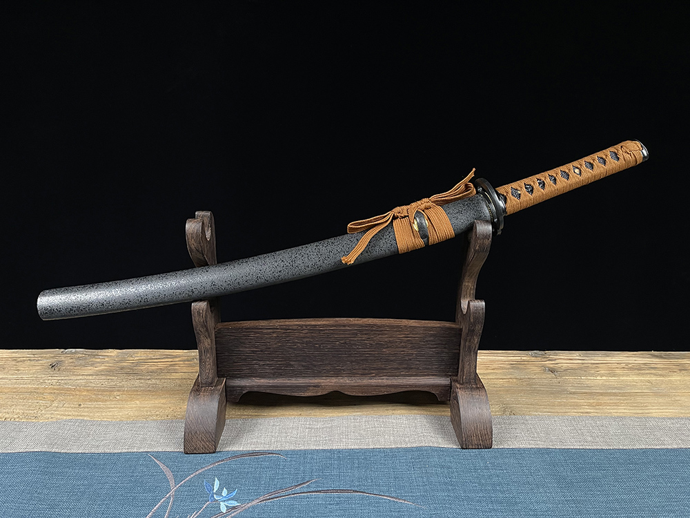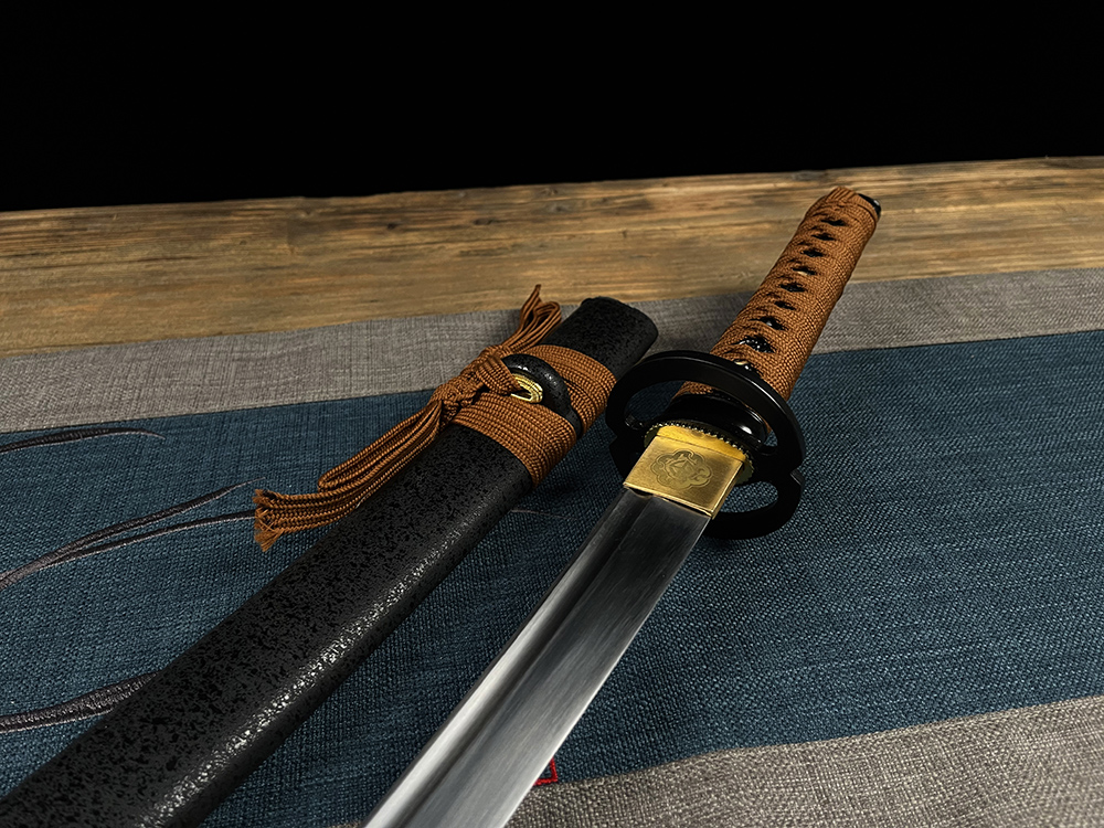 【规格】 全长:78cm左右,柄长:23cm,刃长:52cm,刃宽:3.2cm,刃厚:0.7cm 刀刃: 高碳钢 全槽 切线 刀鞘: 木质+黑色哑光点漆 手柄: 木质+棕色真丝带+黑色真鱼皮+黑色龙片 下绪: 棕色真丝带 配件: 合金装置+铁刀盘+铜制刀夹+铜垫片 其他事项: 手工产品,重量尺寸稍有误差,请以实物为准