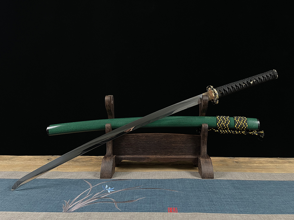 【规格】 全长:103cm左右,柄长:26cm,刃长:72cm,刃宽:3.2cm,刃厚:0.7cm 刀刃: 超亮镜面高碳钢 刀鞘: 木质+高级艺术点漆 手柄: 木质+黑色真丝带+黑色真鱼皮+铜龙片 下绪: 双色粗真丝带 配件: 铜装做旧鎏金装具+铜制花夹+紫铜垫片 其他事项:手工产品,重量尺寸稍有误差,请以实物为准