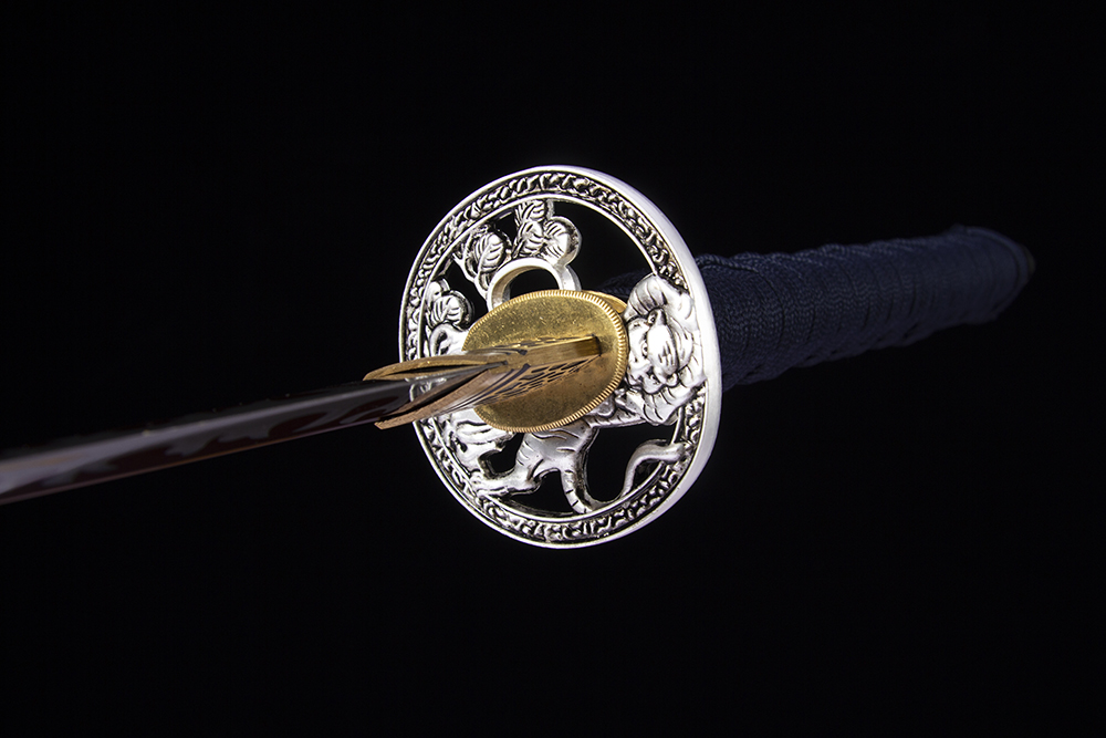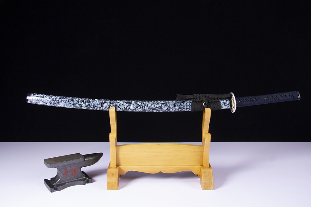 【规格】 全长:103cm左右,柄长:26cm,刃长:72cm,刃宽:3.2cm,刃厚:0.7cm 刀刃: 高碳钢 4面 烤金 双线手磨刀纹 刀鞘: 木质+黑色白拉丝大漆 手柄: 木质+咖啡色皮带+黑色仿鱼皮+龙片 下绪: 黑色中粗真丝带 配件: 合金装具+铜制花夹+铜垫片 包装: 普通纸箱 其他事项:手工产品,重量尺寸稍有误差,请以实物为准