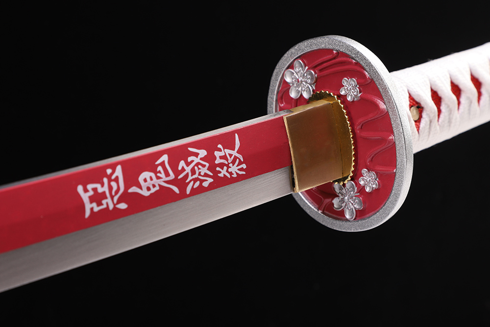 【规格】 全长:103cm左右,柄长:26cm,刃长:72cm,刃宽:3.2cm,刃厚:0.7cm 刀刃: 碳钢4面+漆纹处理+文字 刀鞘: 木制+黑亮漆+贴花 手柄: 木制+白色真丝带+仿粉红鱼皮 配件: 合金装具+铜制刀夹 其他事项: 手工产品,重量尺寸稍有误差,请以实物为准。