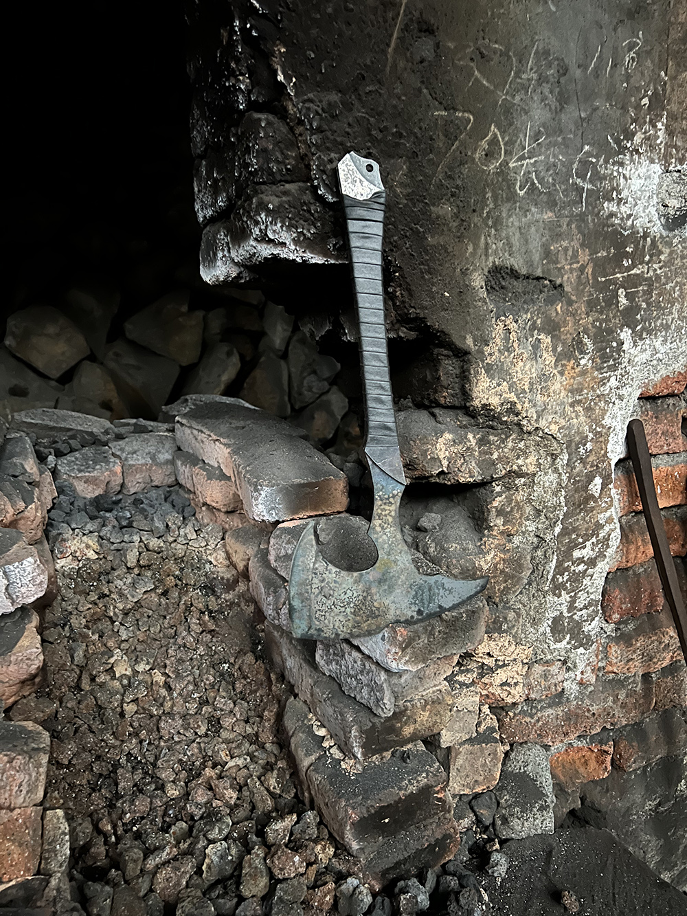 【规格】 全长:41cm, 刃长10cm ,刃厚0.5cm ,柄长25cm ,刃宽18cm ,鞘长21cm,含鞘1.01kg ,净重0.96kg,65Mn钢手工打造,古法热处理,仿皮绳,仿皮套 其他事项: 手工产品,重量尺寸稍有误差,请以实物为准