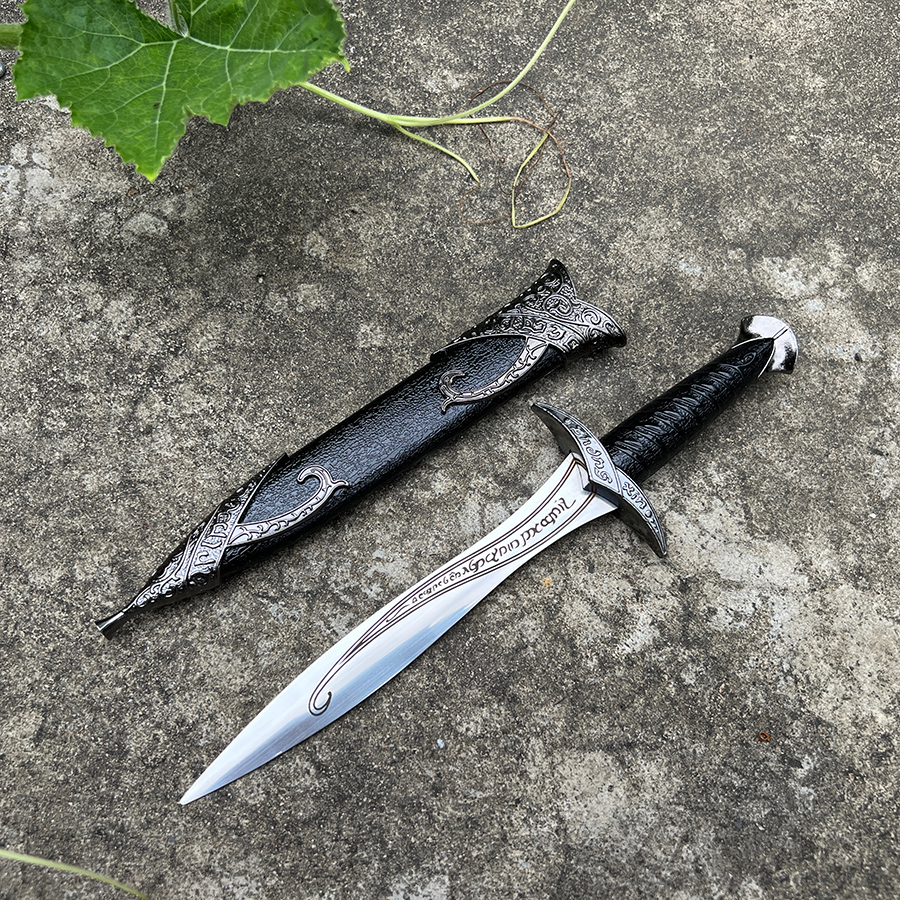 【规格】 全长:28.4cm左右,柄长:8cm,刃长16.3cm,刃宽:2.4cm,刃厚:0.22cm,鞘长19.7cm ,不开刃 其他事项: 手工产品,重量尺寸稍有误差,请以实物为准