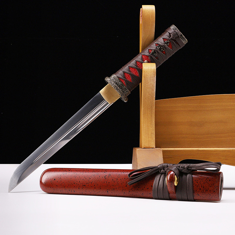 【作品简介】 本店商品均实物拍摄,细节清晰,可仔细比较。 【作品规格】 全长:37.6cm左右,柄长:13.5cm,刃长:21.31cm,刃宽:2.71cm,刃厚:0.69cm,带鞘 0.41 kg左右。 【刃材工艺】 【作品鞘材】 【作品装具】 【作品硬度】 HRC 【作品柄材】 【作品赠品】 锦盒 架子 证书 【其他事项】 手工产品,重量尺寸稍有误差,请以实物为准。 赠品里面的架子并不是图上的展示的架子,图片架子另外加180。